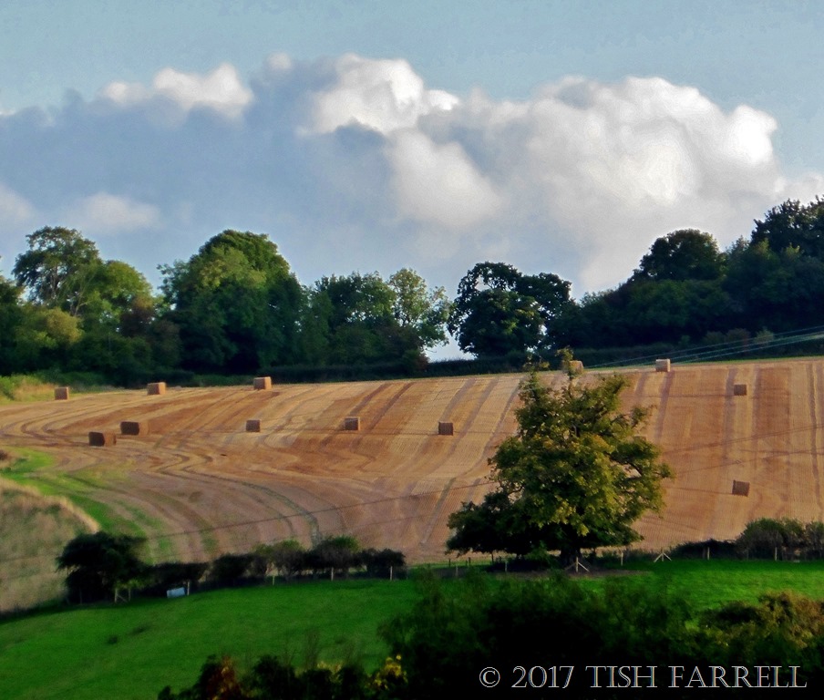 Come August and this year’s harvest has already been and gone. A good month earlier than usual. And somehow we missed it, we who live in the midst of rural Shropshire. In fact, when we drove out of Bishop’s Castle last Saturday, it was quite a shock: wherever you looked the wheat and barley fields lay shorn, the straw baled, or rolled in roundels, the remnant stubble pale and parched. Fields stripped.