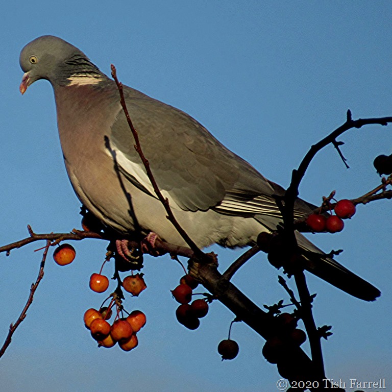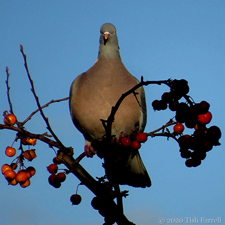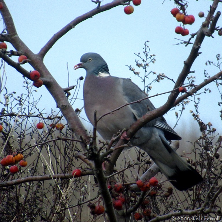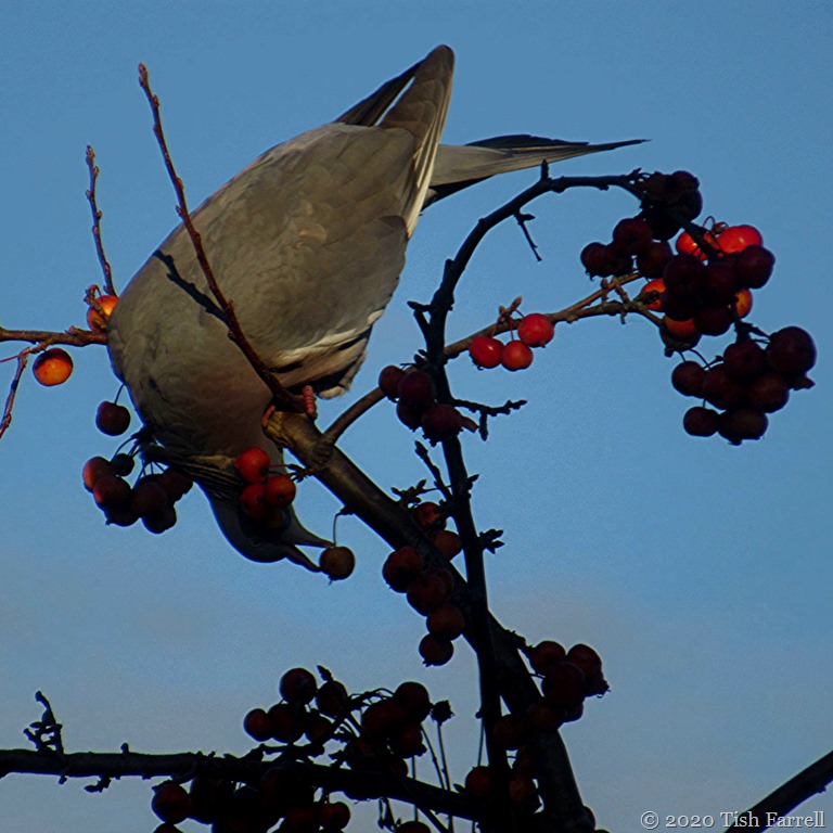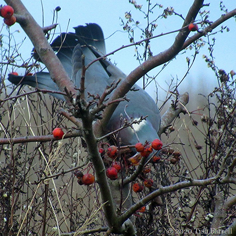 Well no. Pigeons can’t chew or swallow whole crab apples, though this morning I watched one have a darn good try. (Appropriate procedure for dealing with a choked pigeon anyone?)