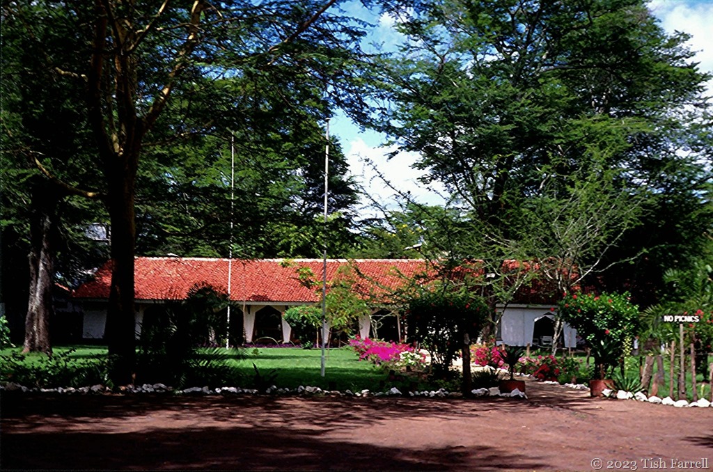 At some time in the sixties the site was expanded into a motel with a small block of architect designed guest rooms overlooking the pool. (In his day, Hunter had dammed the Kiboko River that fed the waterhole and so created a garden lake). For a time the place had a heyday, being the weekend spot for British expatriates, or the main overnight stopover for anyone driving to or from Mombasa. Then the highway was improved with a layer of tarmac, and the clientele drove on by.