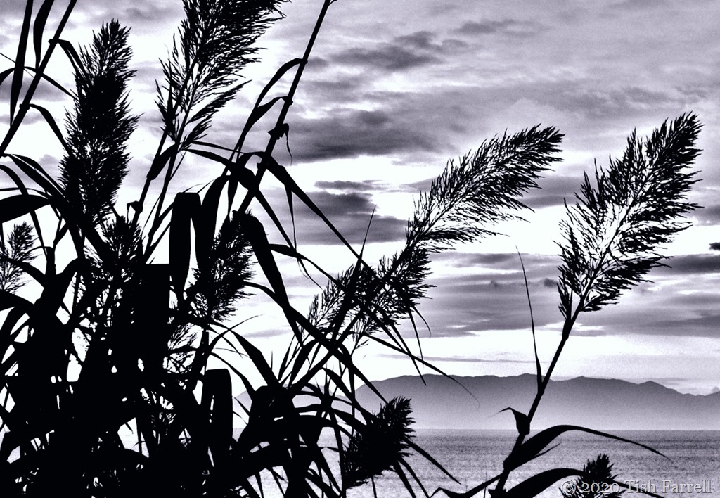 At other times of the day – at dawn and dusk, the peninsula solidifies flatly; a woodcut; or a paper chain of tumbled rhomboids; cardboard cut-outs. Often there is a train of frothy cloud overhead. It looks like whipped meringue.
