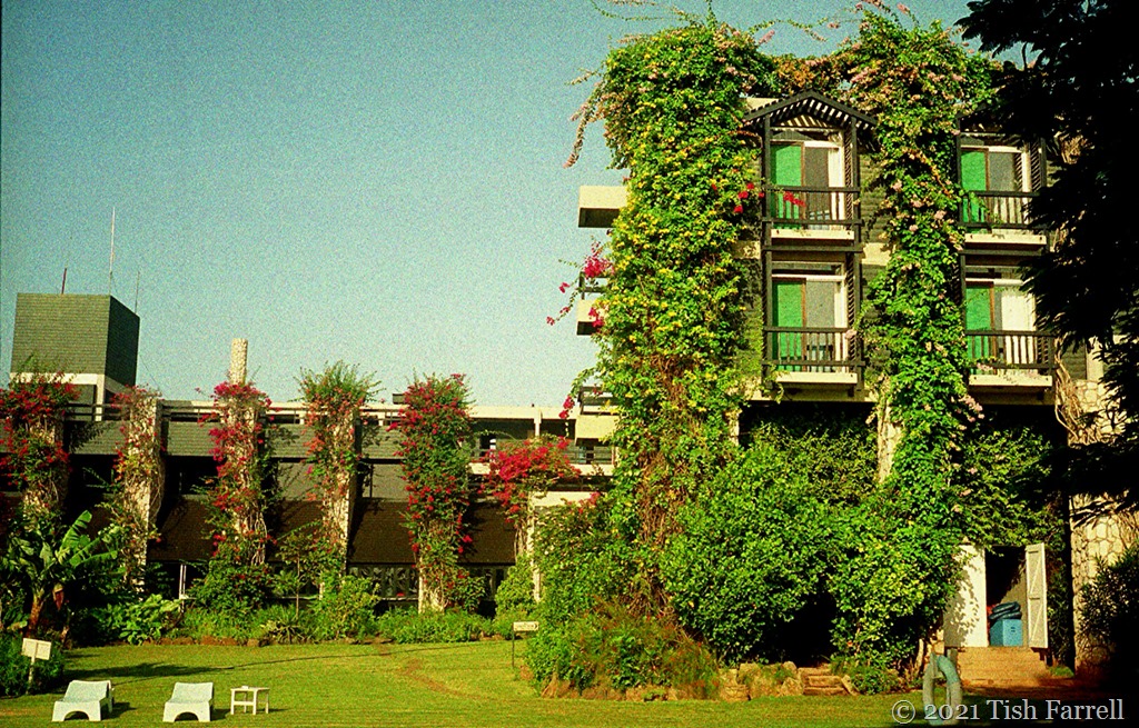 Around noon, fleets of safari vans, up from Mombasa, or down from Amboseli, would start arriving, their occupants spilling out, mostly young folk clothed in skimpy beach wear. They would be welcomed into the great hall with gentle decorum, glasses of chilled fruit juice set out on flower decked trays, but the tide of newcomers could never be quite contained – the rush to the bar, the scramble to join the lunch queue in the baronial dining room. Those tourists who did check in, usually only stayed one night and were off after breakfast. And so we became the centre of enthusiastic attention from the hotel staff. We stayed longer; five days on one occasion. ‘That’s almost a week,’ one waiter told us approvingly; we were doing them and the place proud.