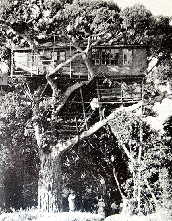 Here’s the original Treetops where the royal party stayed, taken from the book by its builder, Eric Sherbrooke Walker, Treetops Hotel.
