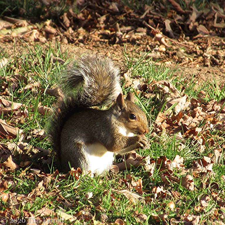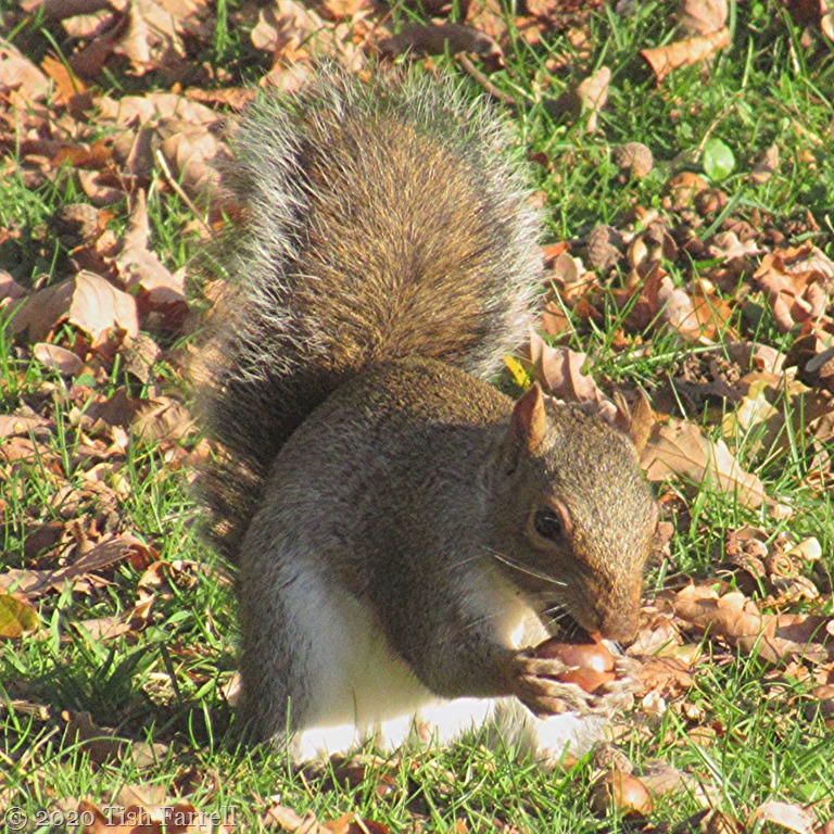 I’m back on home turf and in the current time zone for today’s wildlife squares. They were snapped in the Linden Field earlier in the week during a sudden spell of dry weather. Everywhere I looked along the Windmill Hill perimeter there were grey squirrels scurrying, nibbling, delving, tail whisking, scooting up and down the big oak trees. Acorns, acorns acorns – the big autumnal stuff ‘n store imperative in action. Squirrels being kind to themselves.