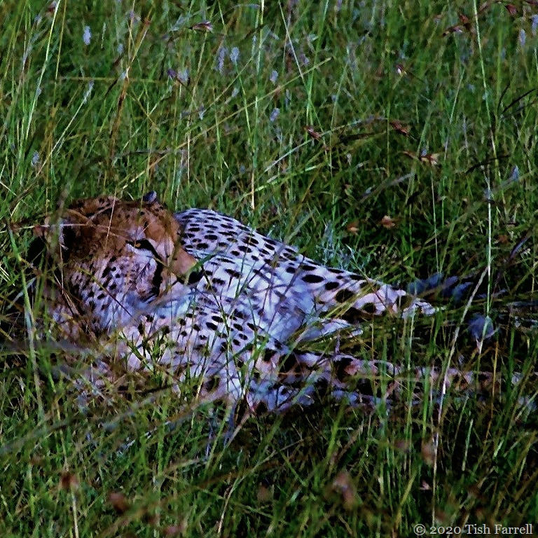 They look like tears, the mascara-esque markings running from a cheetah’s eyes. It’s one of the ways you know that you are not looking a leopard in the face, which is usually a good thing if lack of distance is an issue. Cheetahs are anyway more agreeable, at least to human kind, with attacks in the wild apparently unknown. Their paws are more like dog than cat paws, though they do have a vicious dew claw which they use to snag and trip their prey, mostly small antelope of the Thomson’s gazelle variety.