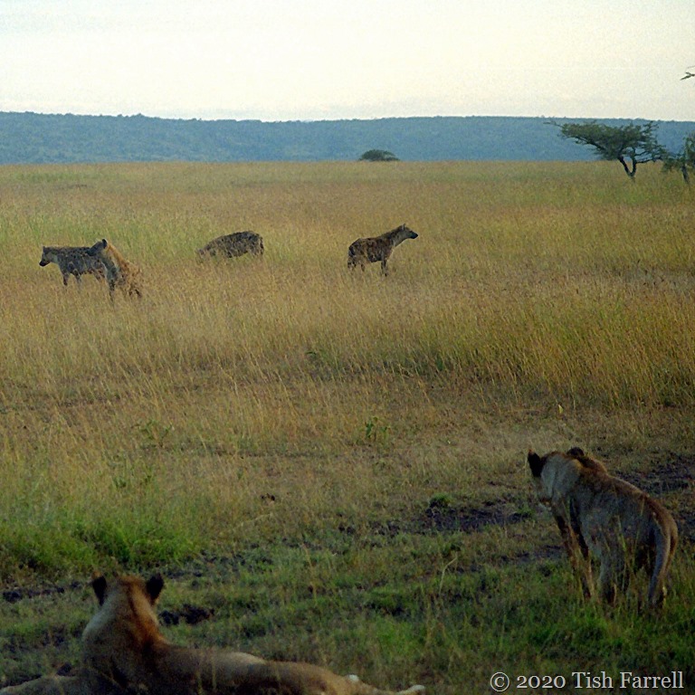 Hm. I’m not winning over friends for hyenas, am I? Still, they do clear up the place when in scavenging mode, as they are in these photos, though the lions were not keen to share their leftovers. But then hyenas, along with other predators, doubtless also help to keep herd animals healthy by recycling the weakest members, and the pursuit itself, predators on the hooves of herbivores, may have a key role to play in the maintaining the Serengeti-Mara eco-systems.