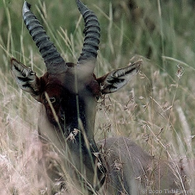 A topi in the grass and apparently on its own too. Usually they go about in large herds and the males like to stand on top of ant hills or any earthy hummock to show themselves off. Similar to Coke’s hartebeest, they can be distinguished by their deep chestnut coats with plum-coloured flashes. They are a subspecies of tiang antelope found in Ethiopia and southern Sudan, which in turn represent northerly versions of the Central and South African tsessbe. All part of the natural world’s endlessly rich and subtle diversity.