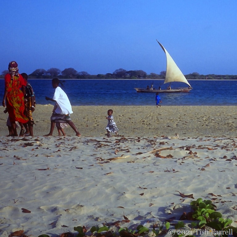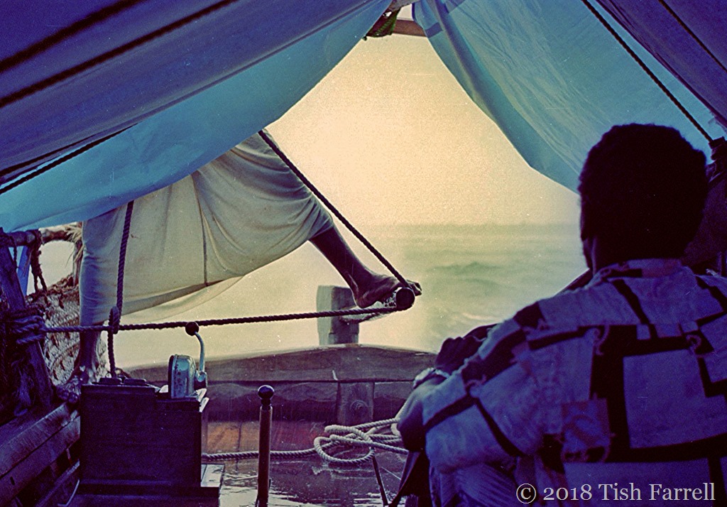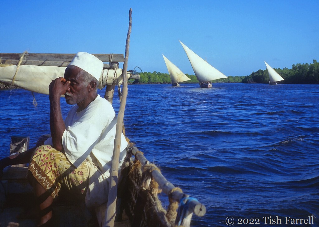 “You could say that Swahili culture was born of the monsoon winds, from the human drive to trade and of prevailing weather. For two thousand years Arab merchants plied East Africa’s Indian Ocean shores, from Mogadishu (Somalia) to the mouth of the Limpopo River (Mozambique), arriving with the north easterly Kaskazi, departing on the south easterly Kusi. They came in great wooden cargo dhows, bringing dates, frankincense, wheat, dried fish, Persian chests, rugs, silks and jewels which they traded with Bantu farmers in exchange for the treasures of Africa: ivory, leopard skins, rhinoceros horn, ambergris, tortoise shell, mangrove poles and gold.
