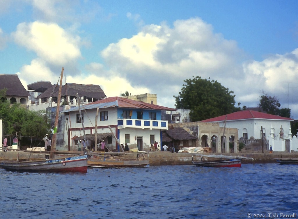 Our first view of Stone Town, Lamu’s main settlement, was on Boxing Day when we were taken on a dhow trip out to the reef. It was a good introduction, sailing along the entire quay, hints of Sinbad magic.