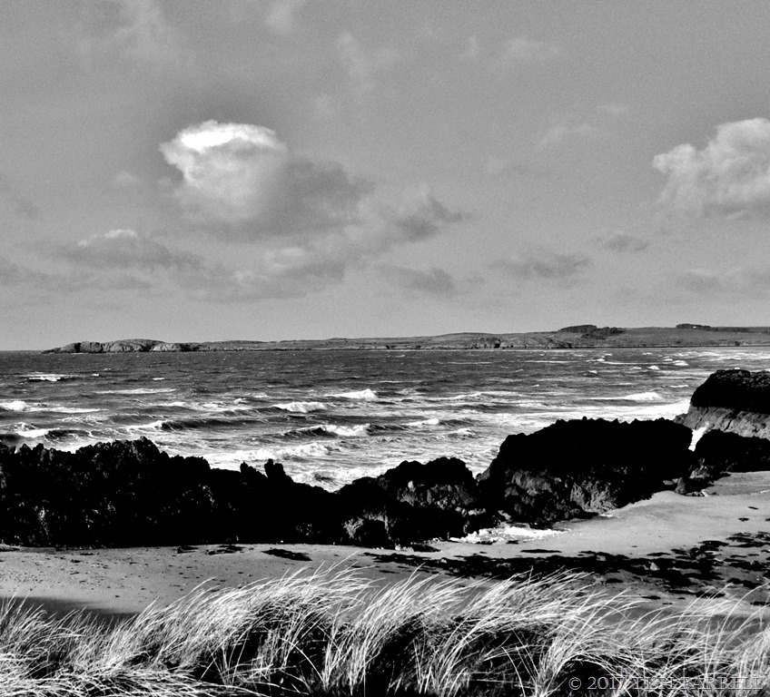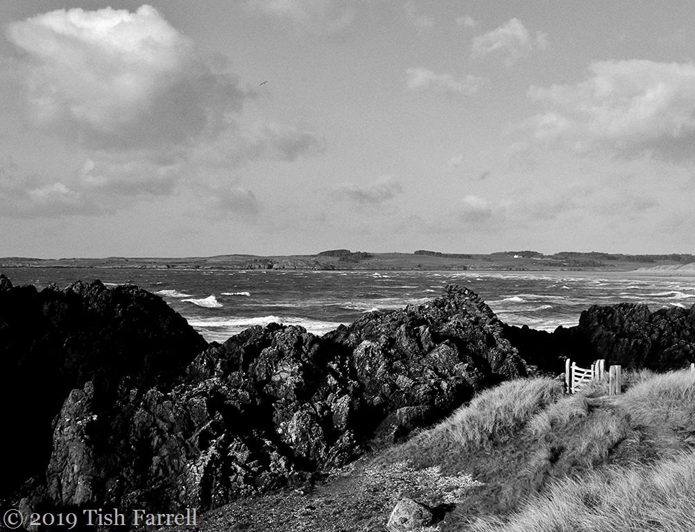 It’s back to Llanddwyn Island on Anglesey for my response to this week’s prompt from Paula. Darkness and light – the stuff of fiction writing, but also the source of many diversions from the work-in-progress to play with my camera’s monochrome setting. The hazy uplands in the background are the mountains of mainland Wales. The island in question is in reality a long thin promontory heading out to sea from Newborough Beach, and has, since Dark Ages times, been associated with St Dwynwen, Welsh patron saint of lovers. You can read more HERE and HERE.