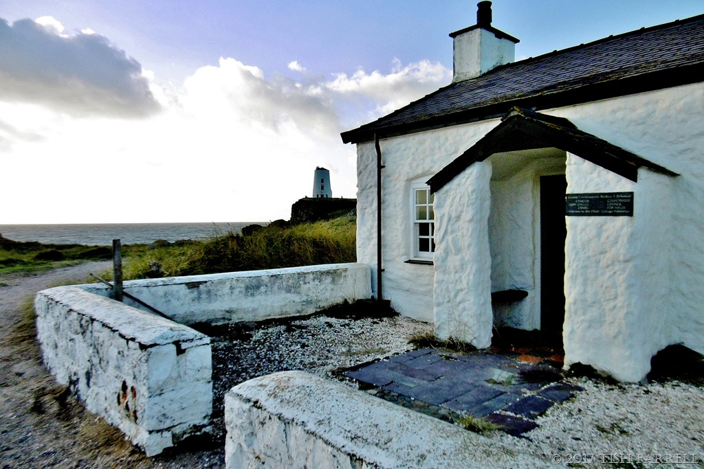 There is anyway much to explore on this small promontory. At every point, as the sea recedes, there are enticing coves – some rocky, some sandy. There are many man-made features too: a Celtic cross of nineteenth century vintage, another marking Dwynwen’s death in 465 C.E. There are the ruins of a Tudor church built on the site of Dwynwen’s own church which she apparently built herself from beach stones, and so doubtless did not stand the test of time and wild Welsh weather. There is also a beacon, a lighthouse and three cottages built for the lighthouse keepers and their families. In the nineteenth century the export of Welsh slate was a thriving industry, and the lighthouse served the slate ships in particular, keeping them off the dangerous Menai Strait sand bars.