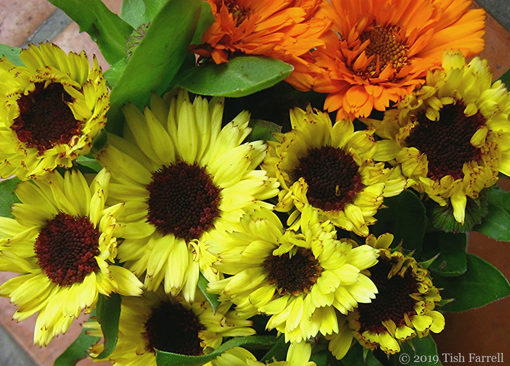 And then as I make for home with my muddy bag filled with veggies, I spot the marigolds (Calendula officinalis). There they are, back in flower after their December lull, and making their own sunshine on a dull and chilly day. I feel a bit guilty about picking them, but then I think some sunshine on the kitchen table would be a cheering sight for He Who Is Presently Coughing His Socks Off. And of course a scatter of petals, therapeutic little entities that they are, would be just the garnish for a dish of roasted golden beetroot.