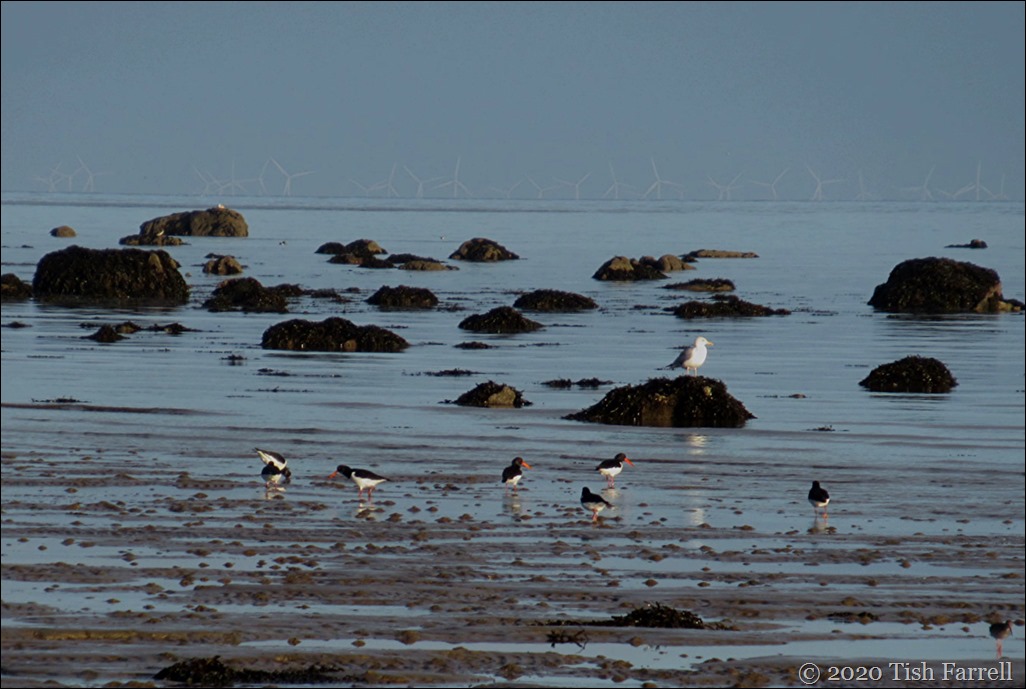 Look to the horizon, out beyond the oyster catchers and the black-backed gull, and you will see a line of ghostly windmills caught mid-arabesque against the sky. This is the Menai Strait between Anglesey and the North Wales mainland, caught on a December morning last year. We often spend Christmas on the island, though not this year for obvious reasons. And we have often had December days like this – perfect sunshine stillness and warm enough to abandon the winter coat. No wonder the windmills look frozen in space. Not a breath of air to stir them. Only the calls of gulls and waders.