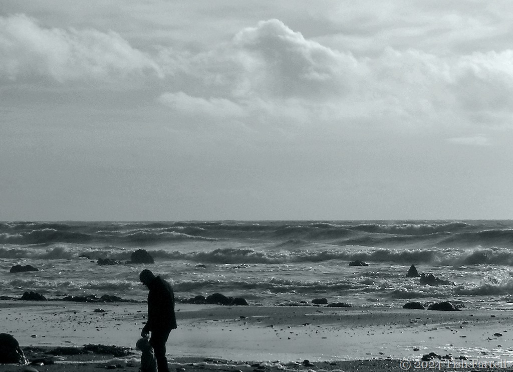 I love winter beaches. You never know how it will be there – the wildness of wind and waves, the shafts of sudden sunlight, sands strewn with sea debris, or storm-scoured, the off-season pursuits of humankind…
