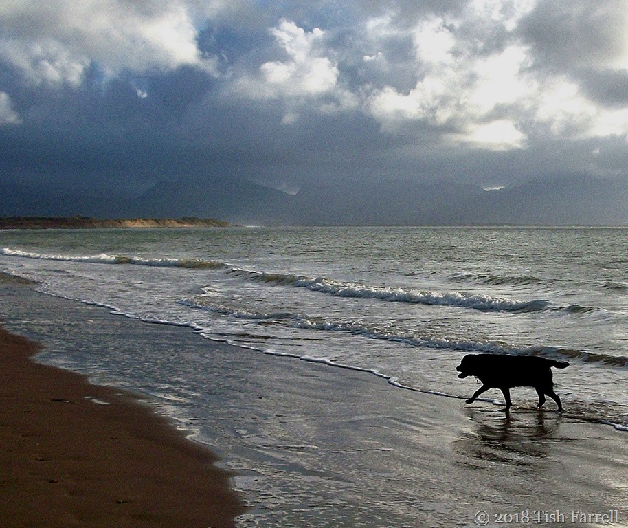 The wild waves on Newborough Beach may look alarming, but this dog was having the time of its life – as dogs usually do. Nothing like a spot of unfettered enthusiasm.