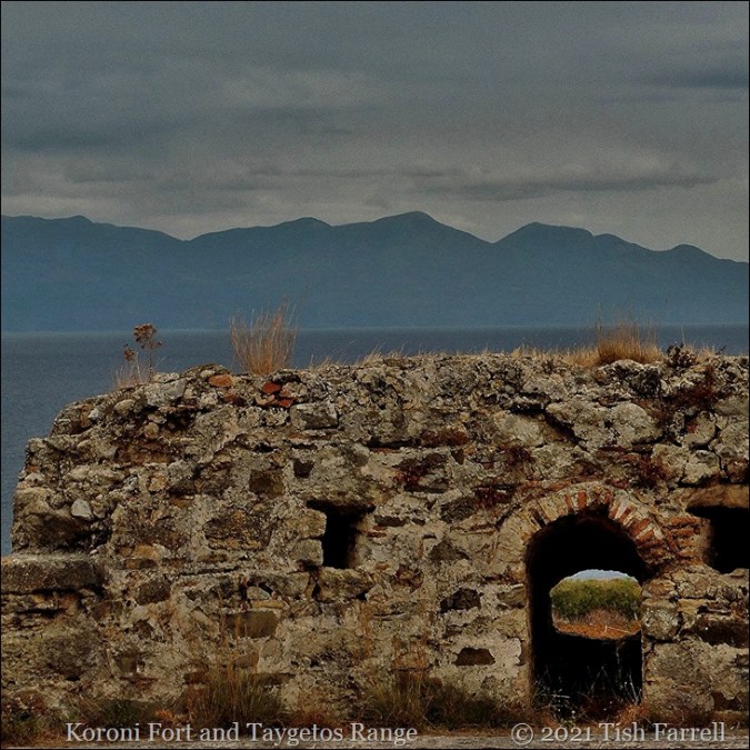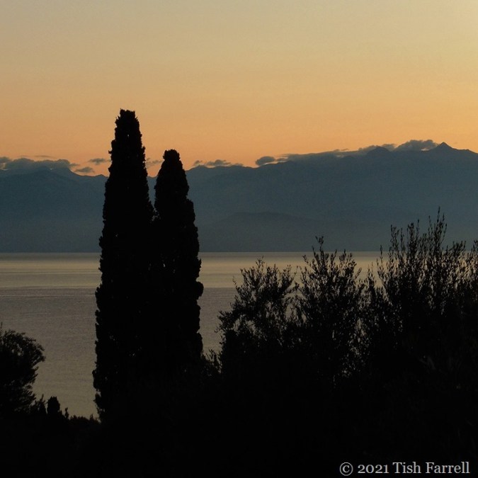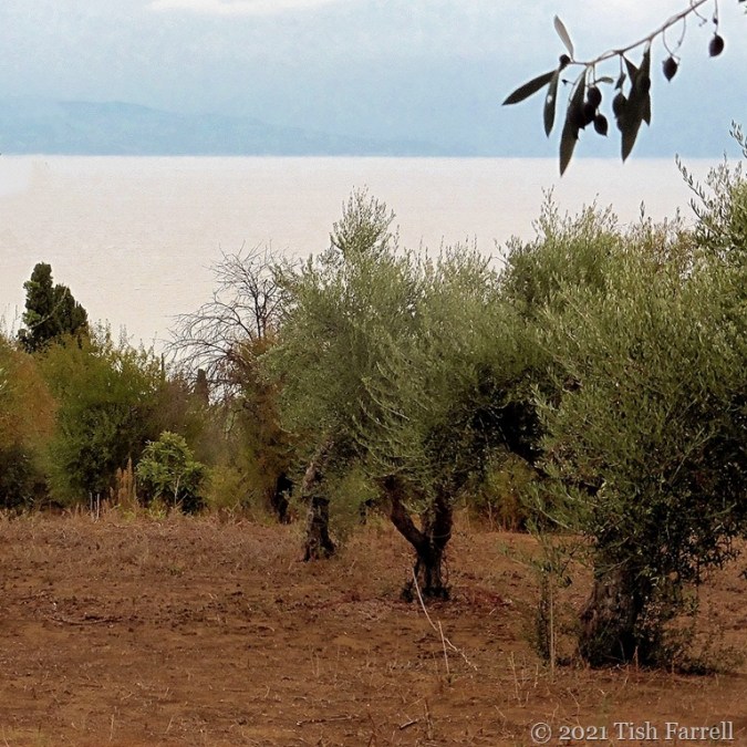 A few Septembers ago we had a family trip to Kalamata on the Peloponnese. I had not been to Greece before, and it was love at first sight – from the moment we left the airport. There had been a fierce summer that year with no rain and the earth looked parched. I don’t know what it was that spoke to me most – the rugged stony uplands, the everywhere-colonies of feathery phragmites reeds, the wild cyclamen, household clutter around the homesteads and olive groves, the olive groves themselves, the country lanes and then the views of the Taygetos Mountains across the Messinian Gulf. The only downside for us, though quite the opposite for the locals, we brought the rain on our heels, so there are stormy skies as well as china blue ones. It anyway seems like a dream now.