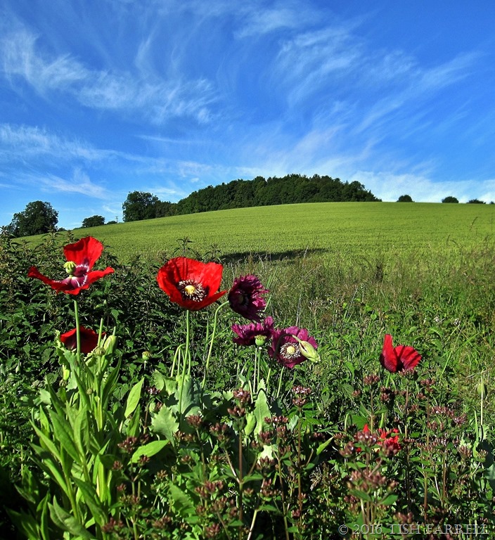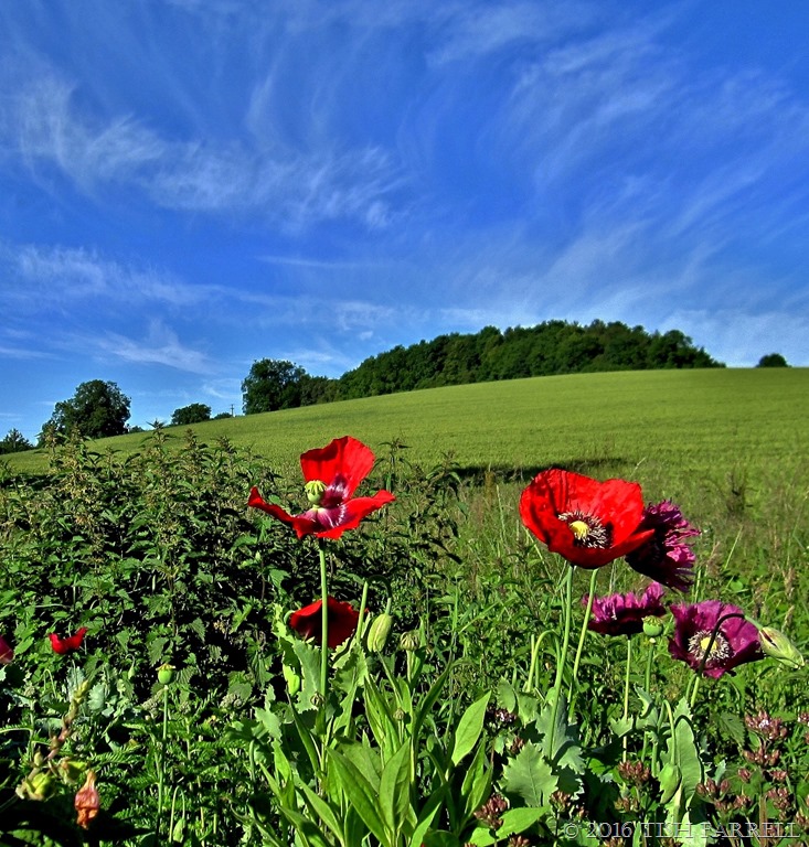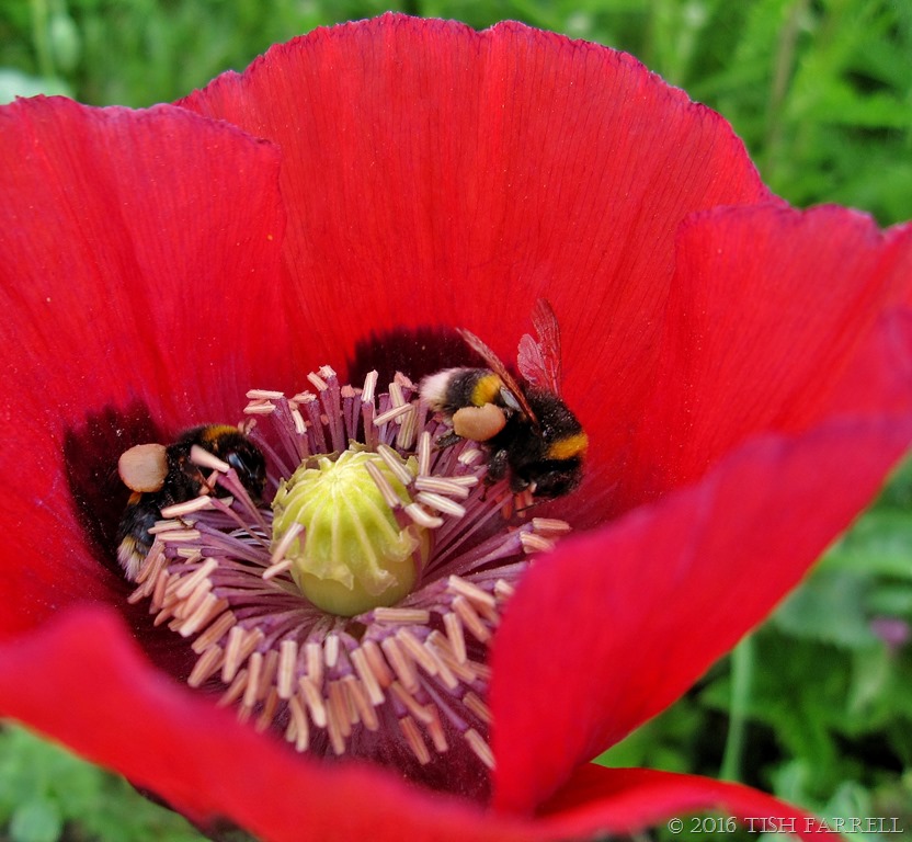 Poppy time on my allotment plot, the oriental perennials I grew from seed last year. I’d been hoping for a range of colours, but it looks as though they are all turning out to be tomato soup red. I should not complain. This bunch are brightening the spot in front of my shed.