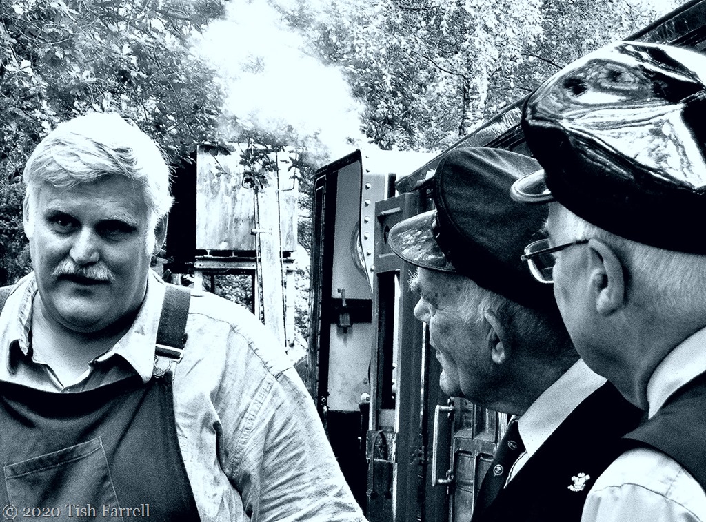 For our first trip on the line we had booked to go on the special Victorian Train Experience, a four-hour potter on an original period train which departed Tywyn Wharf at 11.15 am and aimed to return around 3.20 pm in time for a cream tea in the station restaurant. Our guide, David Leech (seen here in his guard’s uniform) informed us that we would spend that time “wombling around” on the line, fitting in between scheduled services which we would have to give way to at various points. He also explained that the train would stop in several scenic locations so we could get out and photograph it. This also included having the train reverse a mile or so back down the track so we could position ourselves on, or above bridges and catch it on the return, steaming at us for all it was worth.