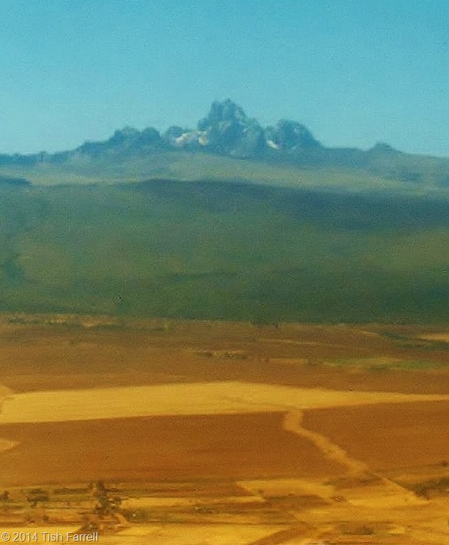 Mount Kenya from the plane window, looking over the European-owned wheat farms of Laikipia