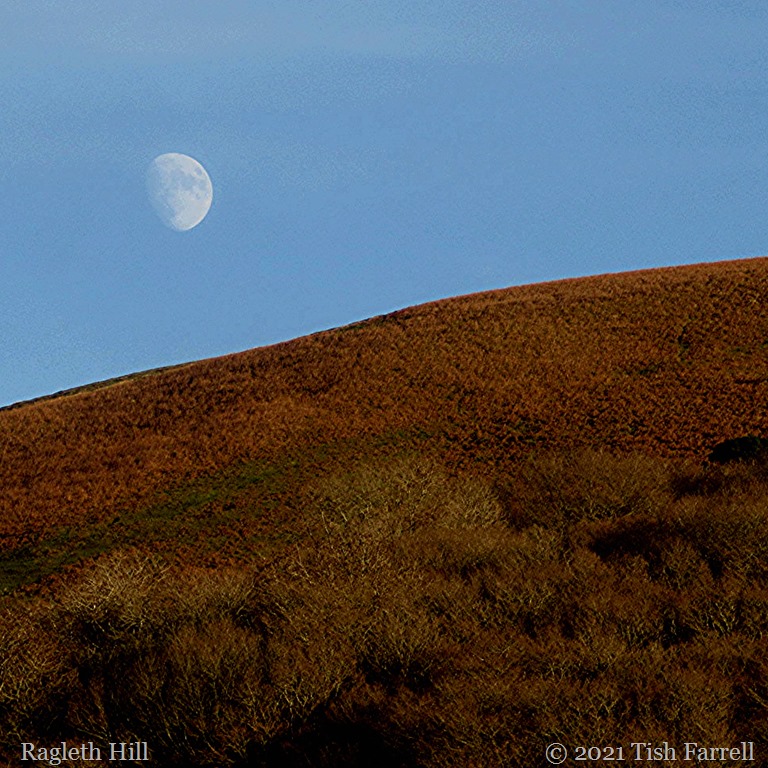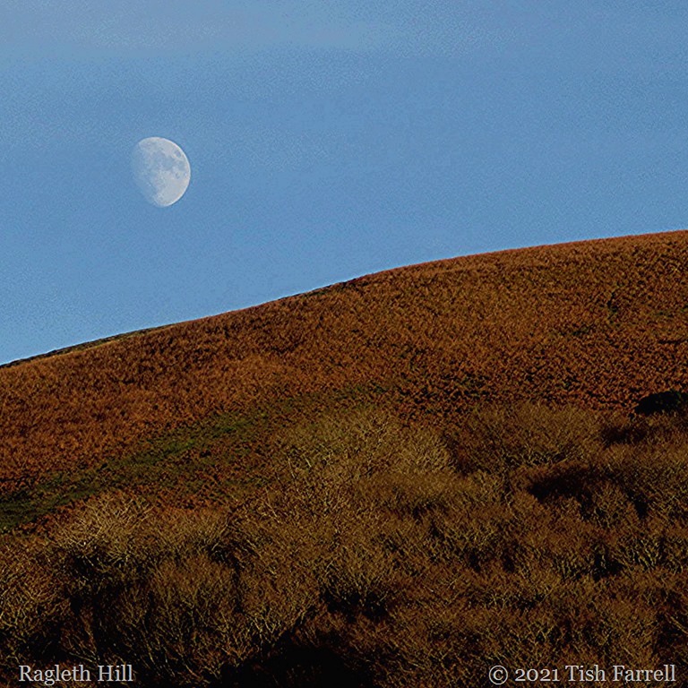On Christmas Day we drove over Wenlock Edge to Little Stretton to spend the day with our family. It was a bright and chilly day, but as I climbed the steep steps to my sister’s home I saw the spring bulbs already emerging in her terraced beds and some frisky pink primroses freshly opened. The house is perched on a lower flank of the Long Mynd and overlooks Ragleth Hill. So while the turkey was roasting, I stood out on the deck and took these photos, watched a pair of buzzards who live in the garden’s larch trees waft over in the stillness.