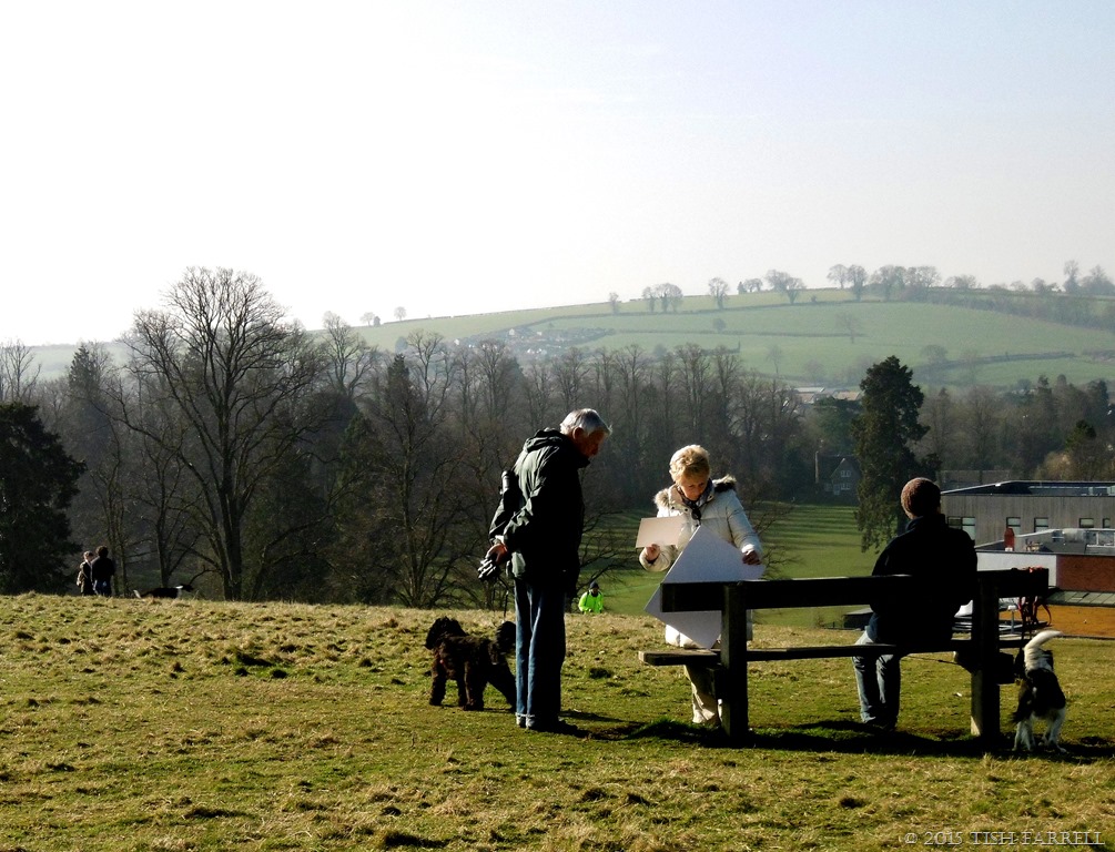 100_5065 Here I am on top of Windmill Hill, Much Wenlock’s landscape landmark, and this is the only way I could see the partial eclipse – with my back to it, and camera at the ready. We had such clear skies, and the sun was so bright that we remained bathed in sunshine throughout this cosmic event, although it did seem very cold. Lots of people who were out walking their dogs had gathered  at the windmill too, one lady monitoring the process through a pin-hole viewer. This is the scene before me as I take the photo over my shoulder: windmill and pointer. Had the eclipse actually happened? P1000779 P1000764 P1000788 Aftermath. I caught the sun in the trees as I walked home across the Linden Field. This, incidentally, was the place where the Much Wenlock Olympian games were, and are still held every year. They were devised in 1850 by the town’s physician and herbalist, Doctor William Penny Brookes, and went on to inspire the founding of the modern Olympic Movement. Windmill Hill provided the natural viewing platform where spectators sat to watch the events. See how this little town of ours spread its good hearted influence around the world. Wishing everyone joy on this, International Day of Happiness   #eclipse #International Day of Happiness