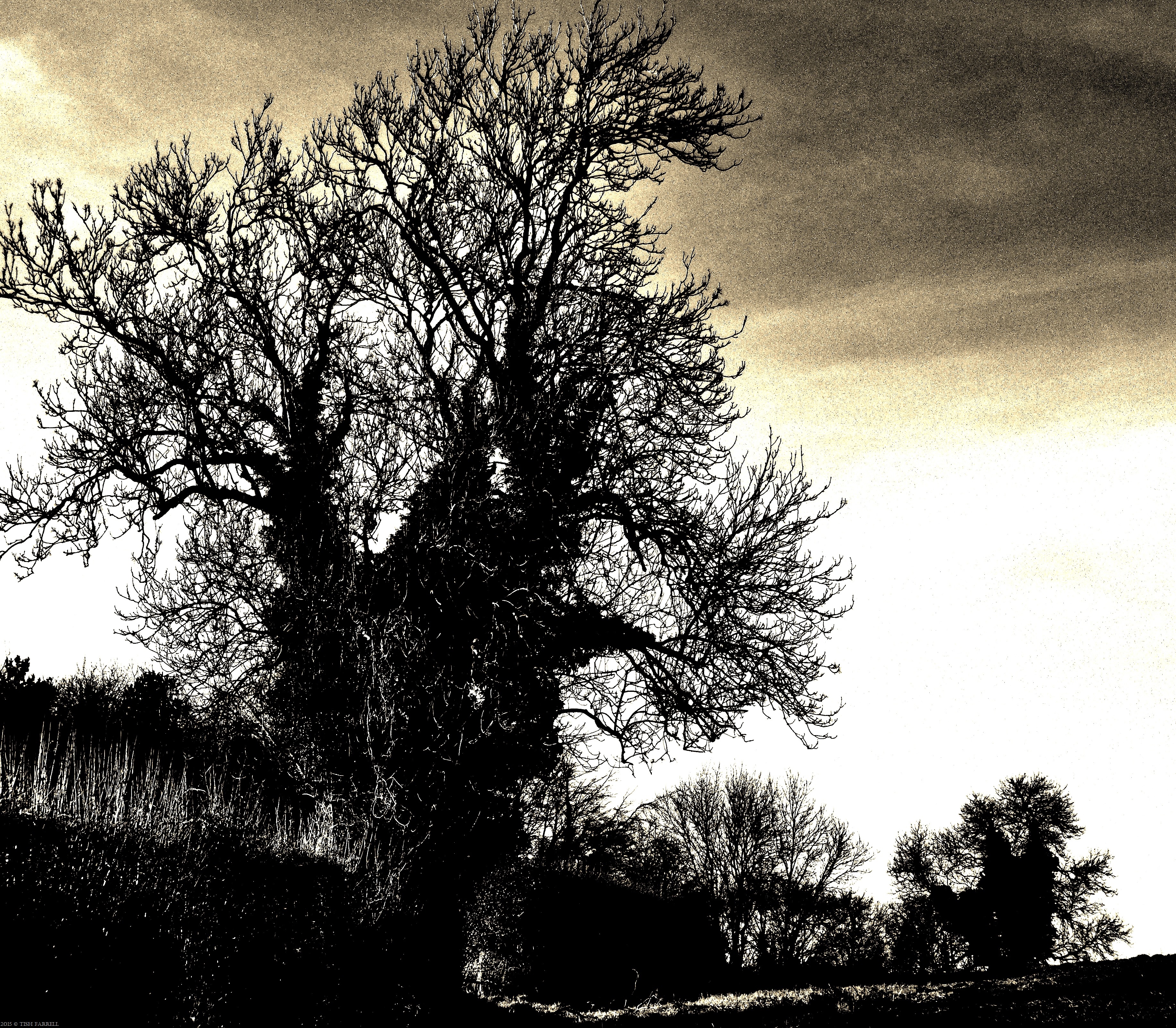 Here is another hill topped with a conifer plantation. It lies on the easterly side of Much Wenlock, and this is the view I see as I come home from the allotment, stepping out under the big ash tree that guards the unofficial ‘gateway’ through the field hedge.