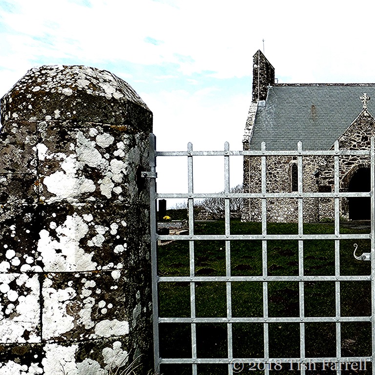 It stands beside the Wales Coast Path looking down on St. Bride’s Haven, a rocky cove with a long, long history. The church is also called St. Bride’s and is dedicated to St. Bridget of Kildare who, it is said, arrived on these shores from Ireland c500 CE.  The original chapel dedicated to her is long gone, though before it went, local fishermen used the place for curing herring, for which act of ecclesiastical disrespect, the herring have ever since steered clear of St. Brides Haven.