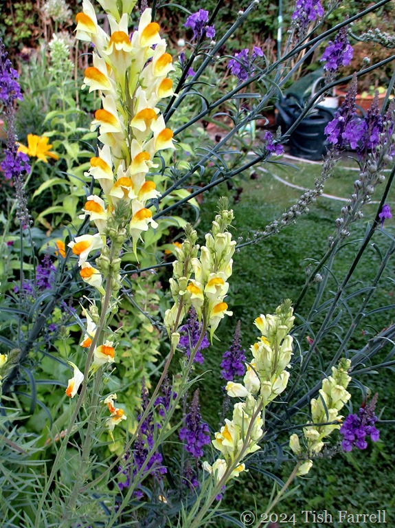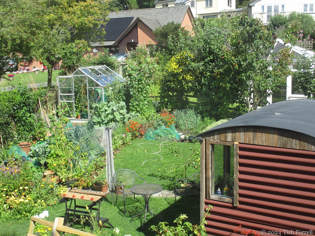 I love the agastache. It smells of aniseed and its leaves are edible. It’s a perennial (I grew lots of it from seed this spring), though I’m not sure how hardy it will prove in a Bishop’s Castle winter. Anyway, it is a very tidy plant, growing beautifully upwards with lots of purple-mauve spires – not easy to photograph well.