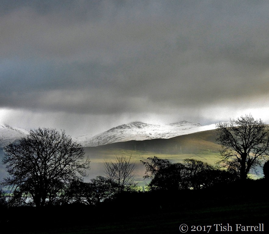 This photo was taken a few Decembers ago – the view from the island of Anglesey looking across the Menai Strait to Snowdonia on mainland Wales, terrain of antique tales of shape-shifting princes and magicians, their black deeds and bloody conflicts.