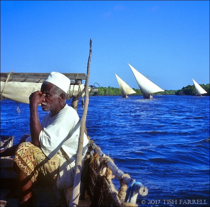 The gentleman so absorbed is Mzee Lali, the owner of the sailing dhow. He spoke no English, nor said a word to us that I recall on our day trip out to the reef. The conversation was dominated by his nephew, Athman, who, as a speaker of English, Kenya’s official language, could hold a captain’s licence, and so take tourists out on sailing trips.