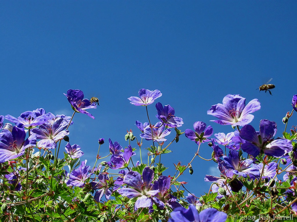 The garden peripheries have also bloomed over the last couple of weeks, surprising given our near total lack of rain for many weeks. In the northerly corner the medicinal herb, St. John’s Wort is now soaring into the apple tree. I grew it from seed donated by a supporter of the Bishop’s Castle Seed Bank. The seed packets sit in a tray at the Town Hall and are free, although donations are welcomed.
