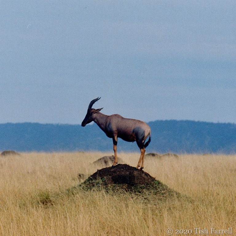 A topi in the grass and apparently on its own too. Usually they go about in large herds and the males like to stand on top of ant hills or any earthy hummock to show themselves off. Similar to Coke’s hartebeest, they can be distinguished by their deep chestnut coats with plum-coloured flashes. They are a subspecies of tiang antelope found in Ethiopia and southern Sudan, which in turn represent northerly versions of the Central and South African tsessbe. All part of the natural world’s endlessly rich and subtle diversity.